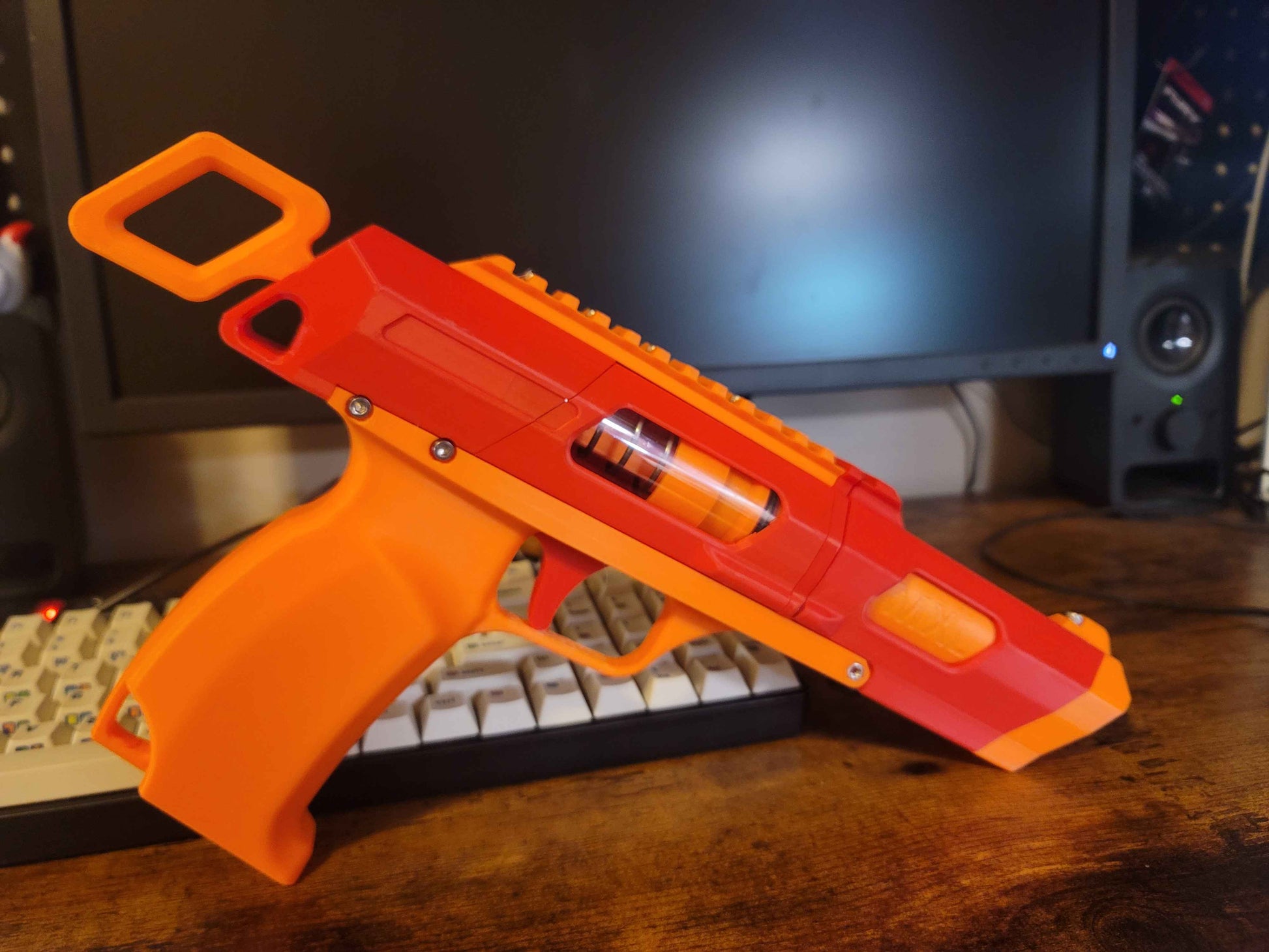 Goblin is a single-shot break-open Silly Shell-fed foam blaster. Goblin packs a punch, capable of reaching 200fps with a sniper shell and good tuning.