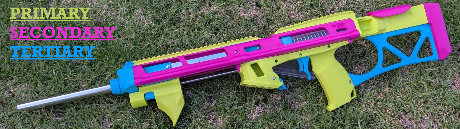 Terminus is two very comfortable 250 fps blasters fused together. Two barrels, two mags two independent triggers, one pump. While it's a bit heavier over a blaster, the ability to double tap is extremely good for gameplay and very satisfying for plinking.